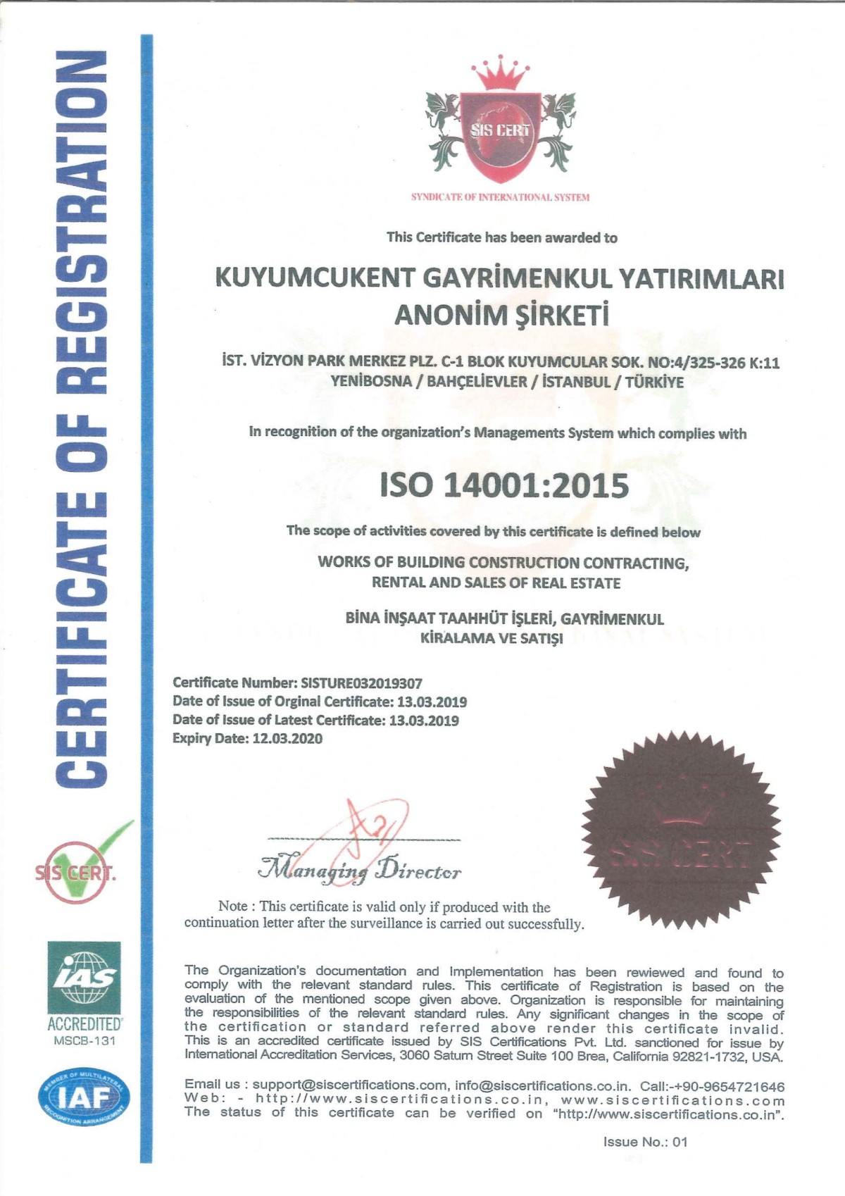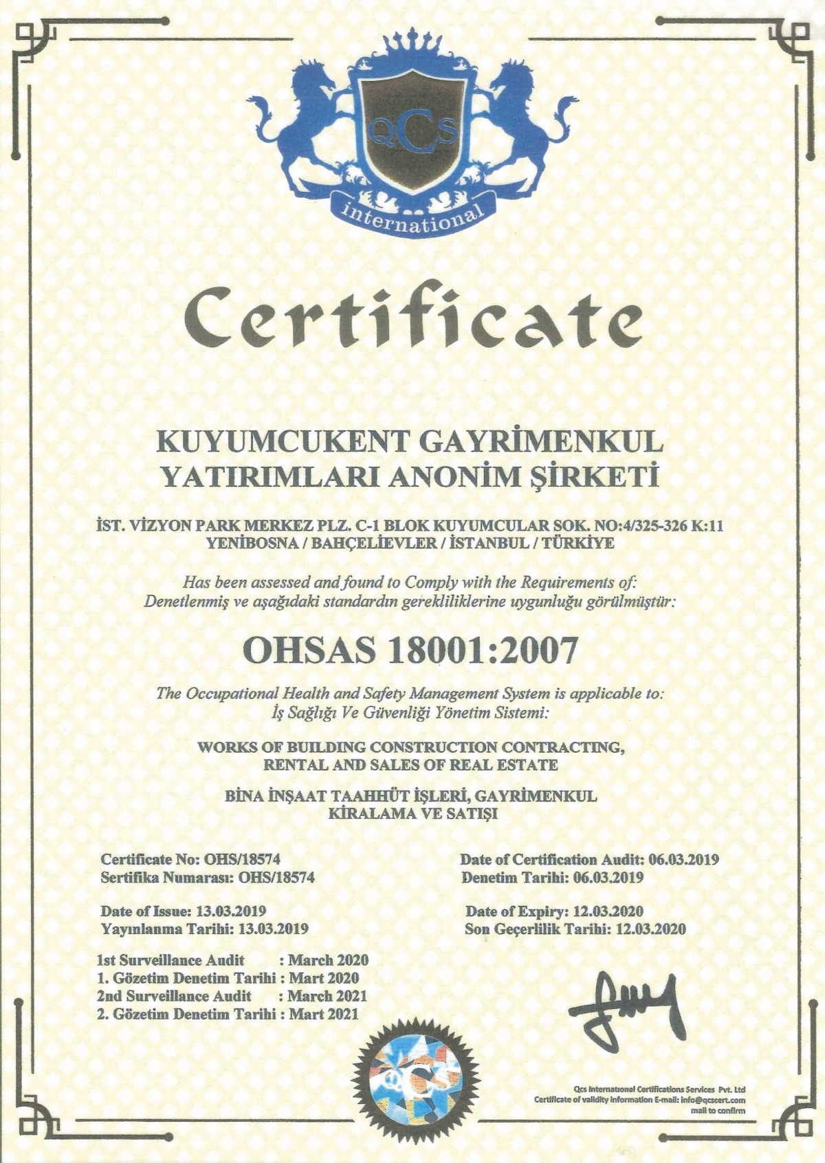 Kalite Belgelerimiz: ISO 9001:2015 – ISO 14001:2015 – OHSAS 18001:2007